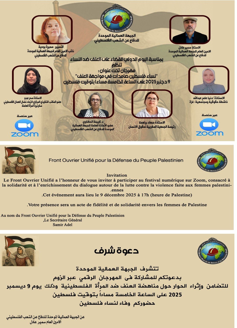 يسعدني أن أتوجّه إليكم اليوم لأحيّي جهودكم الكبيرة في تنظيم هذا المهرجان الرقمي، وفي دعم وإسناد نضالات المرأة الفلسطينية، خاصة نساء شعبنا الصامد في قطاع غزة اللواتي يشكّلن عنواناً للشجاعة والصمود في وجه آلة العدوان.
