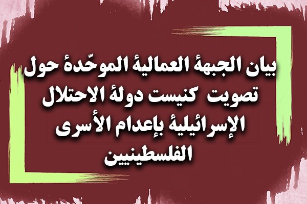 إن الجبهة العمالية الموحدة للدفاع عن الشعب الفلسطيني تدين بأشد العبارات هذا القرار المشين، وتوجه نداءها إلى جميع المنظمات الحقوقية للوقوف بحزم بوجه هذا القرار الإجرامي. وفي الوقت نفسه، تدعو الطبقة العاملة في العالم، والحركة التضامنية مع الشعب الفلسطيني، إلى تصعيد الاحتجاجات والتصدي لهذه السياسات حتى إسقاطها.