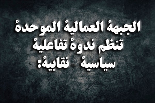نظّمت الجبهة العمالية الموحدة للدفاع عن الشعب الفلسطيني ندوة تفاعلية سياسية – نقابية موسّعة، تحت عنوان: «ما يحدث في غزة والضفة الغربية يفضح تضليل مجلس السلام العالمي»، بمشاركة واسعة من قيادات نقابية، وناشطين سياسيين، وممثلين عن قوى عمالية وتقدمية من عدد من الدول، وذلك في إطار تصاعد العدوان الإسرائيلي المتواصل على الشعب الفلسطيني، واستمرار محاولات تسويق مشاريع سياسية دولية تحت عناوين «السلام» و«الاستقرار».